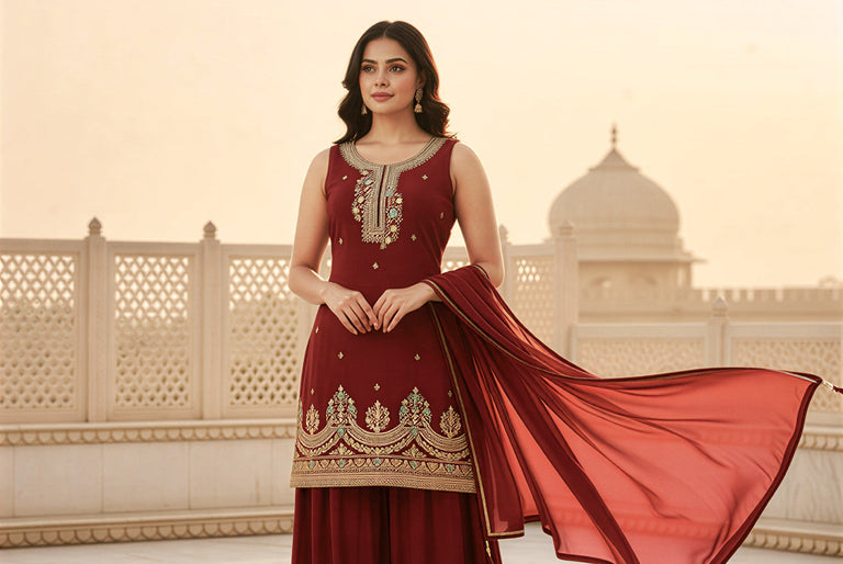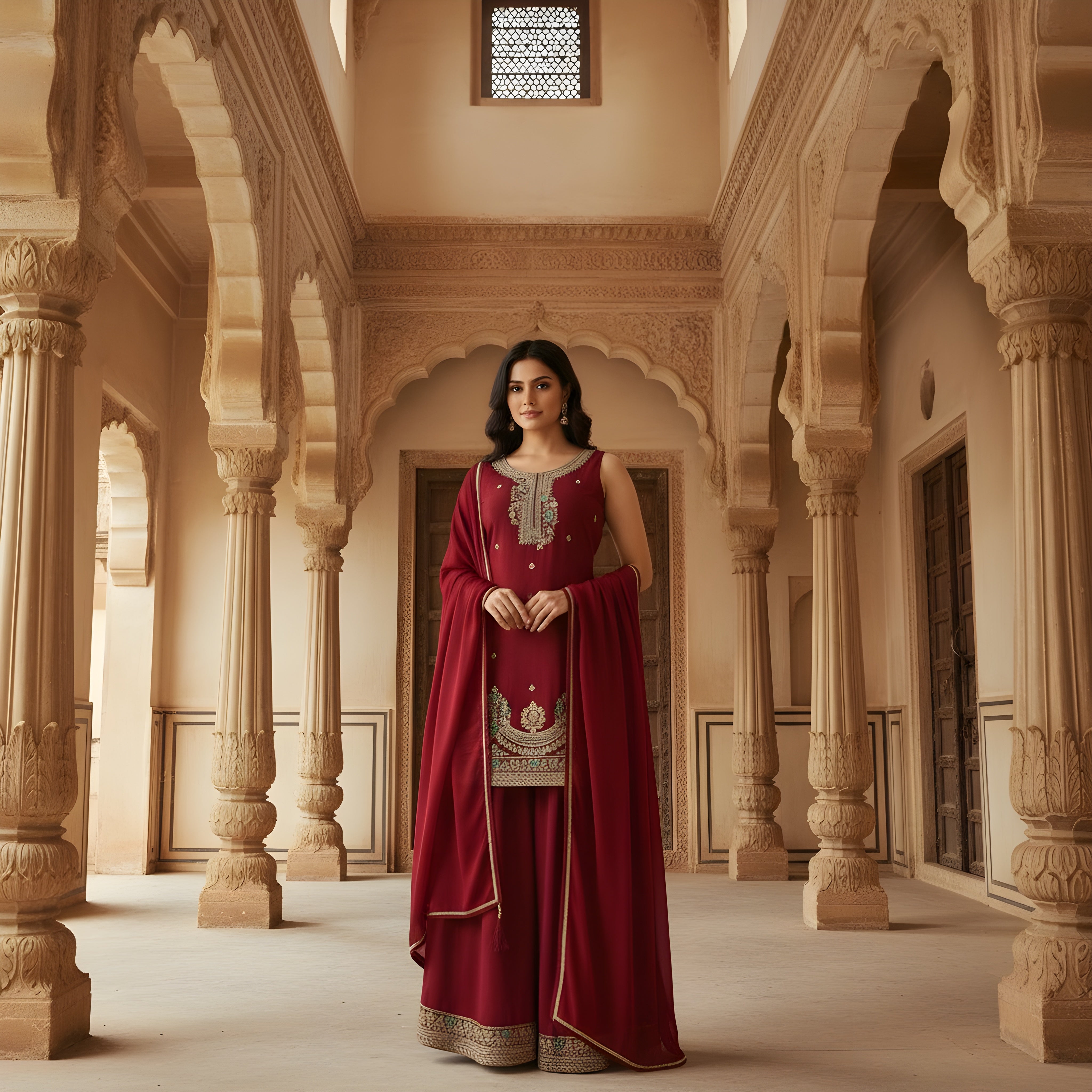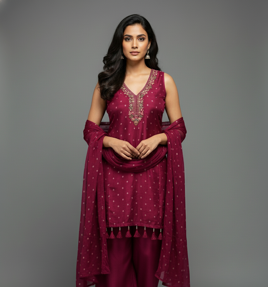 Elegant wine Kurta Set with Banarasi Dupatta| AS-00191