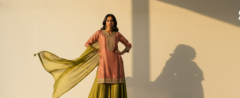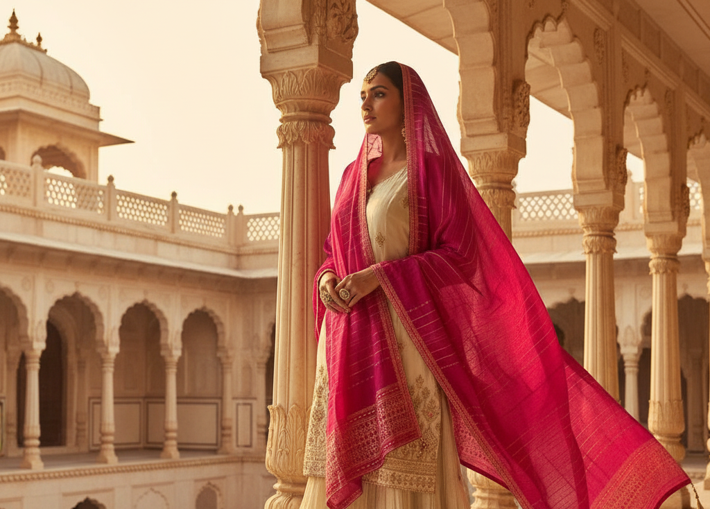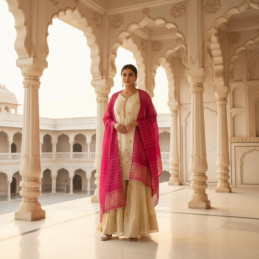 Elegant pink Kurta Set with Banarasi Dupatta| AS-00202