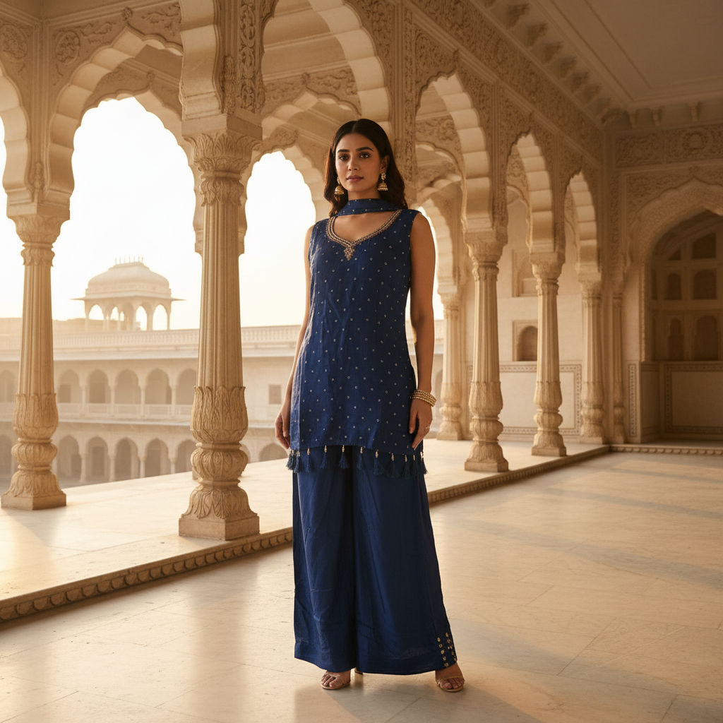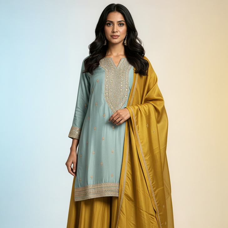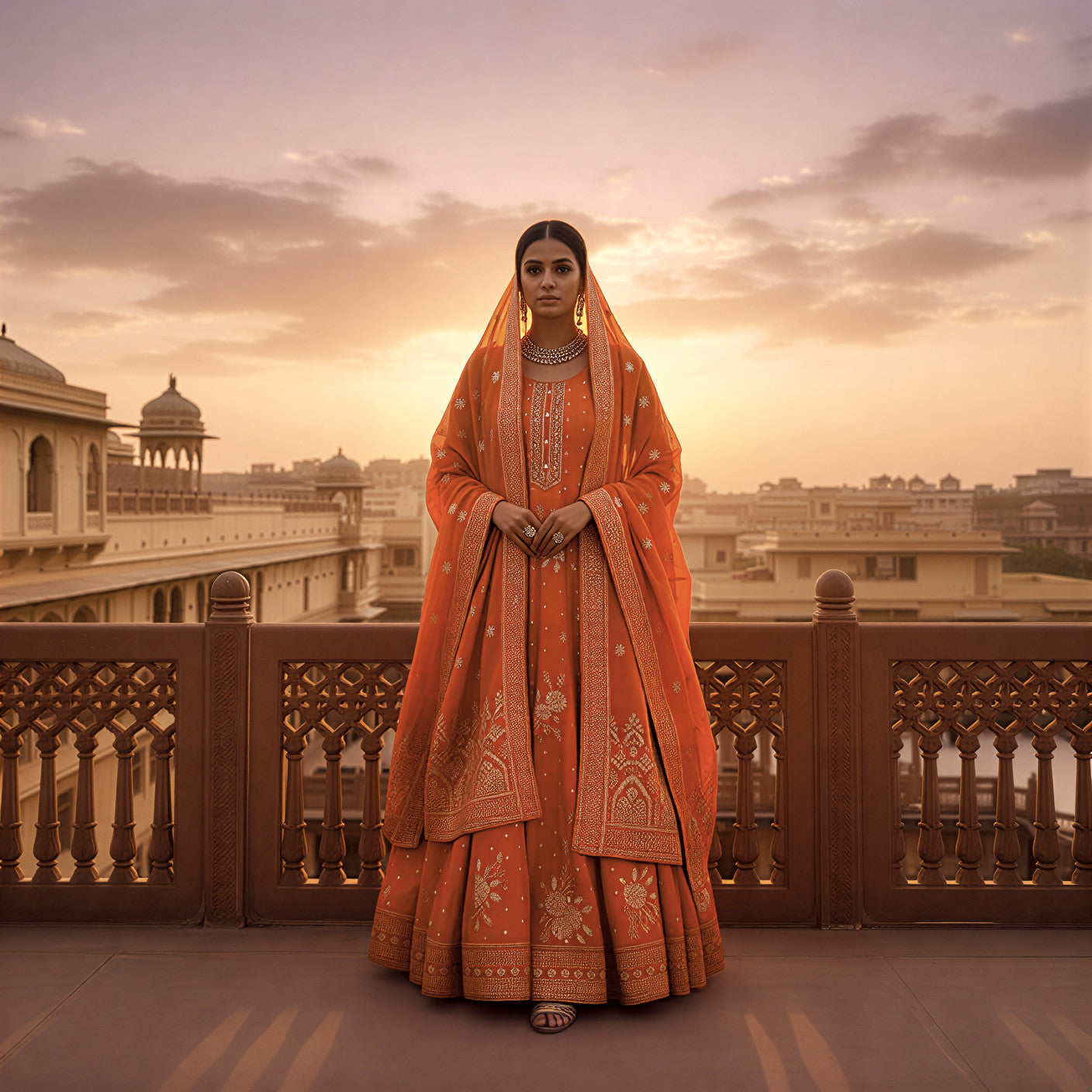 Elegant peach Kurta Set with Banarasi Dupatta| AS-00192